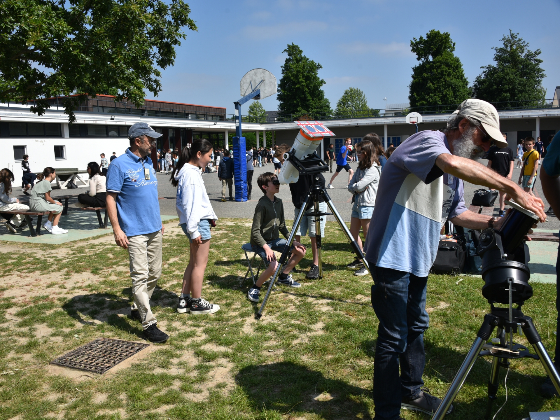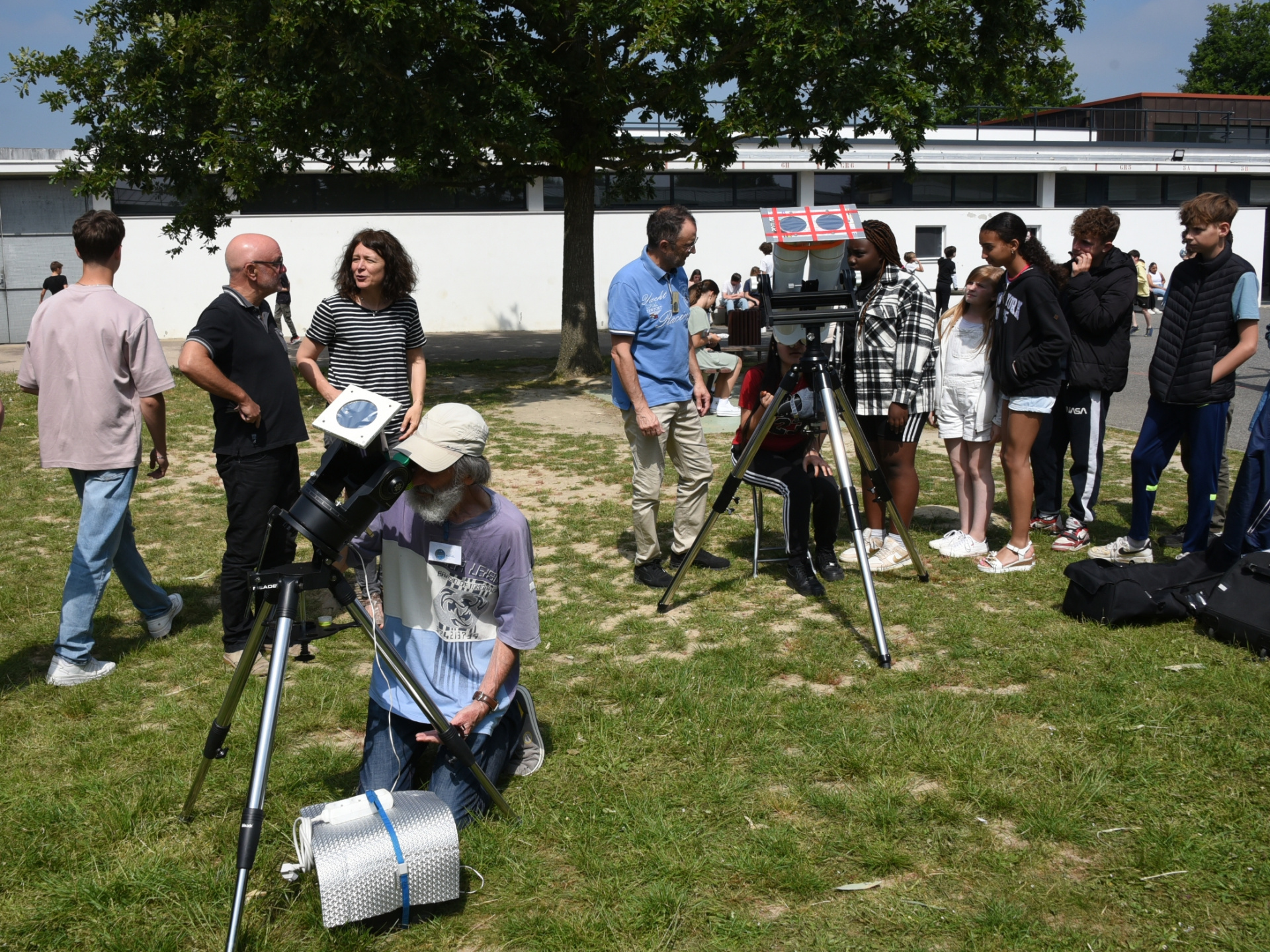L’Association Orgères Astronomie était présente au collège A. Récipon les 12 et 13 juin derniers sur le temps du midi. Au programme : observations du Soleil avec différents télescopes et lunettes astronomiques, quiz pédagogiques et discussions avec les six astronomes de l’association présents pour ces animations !