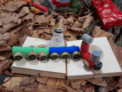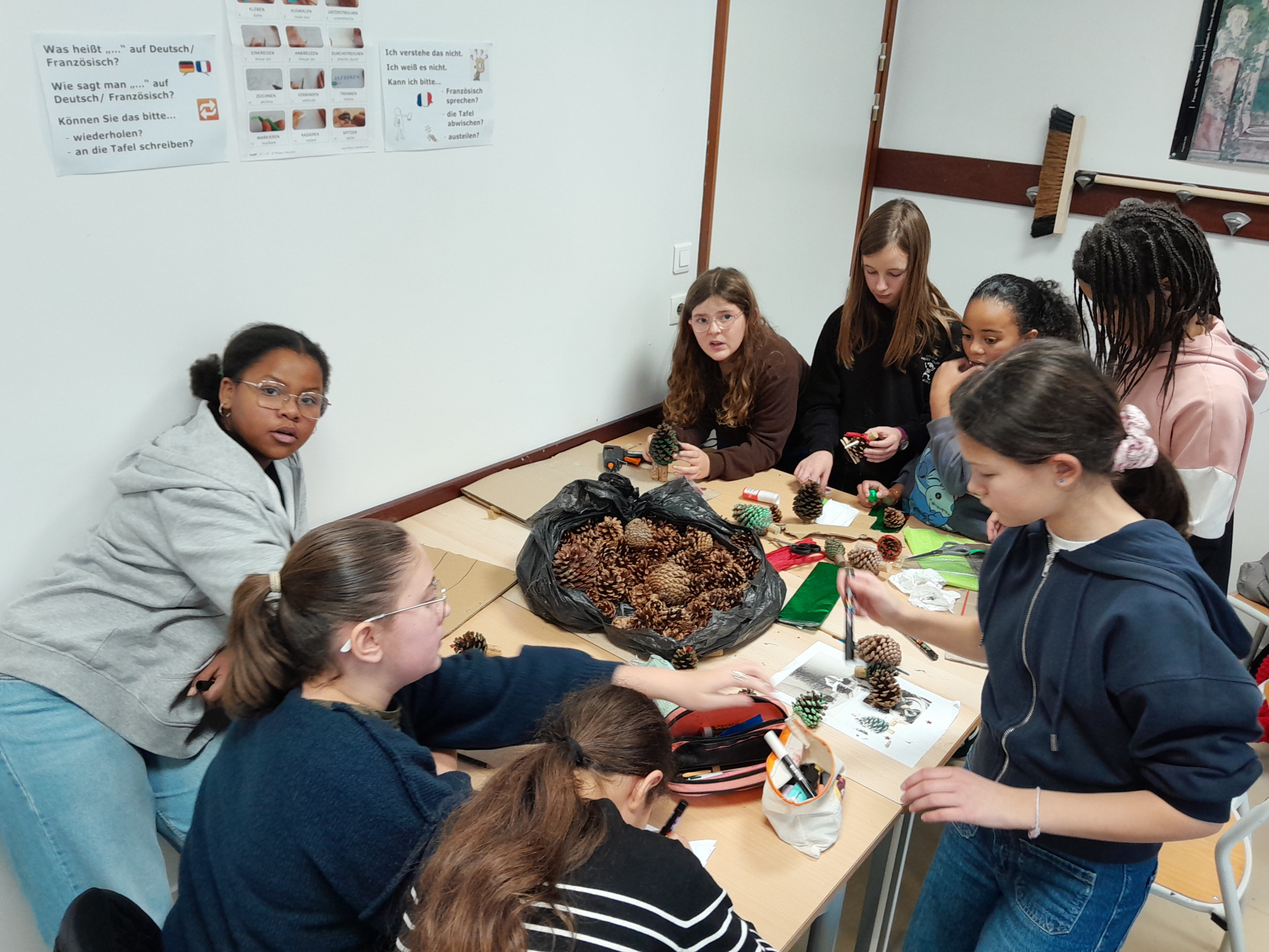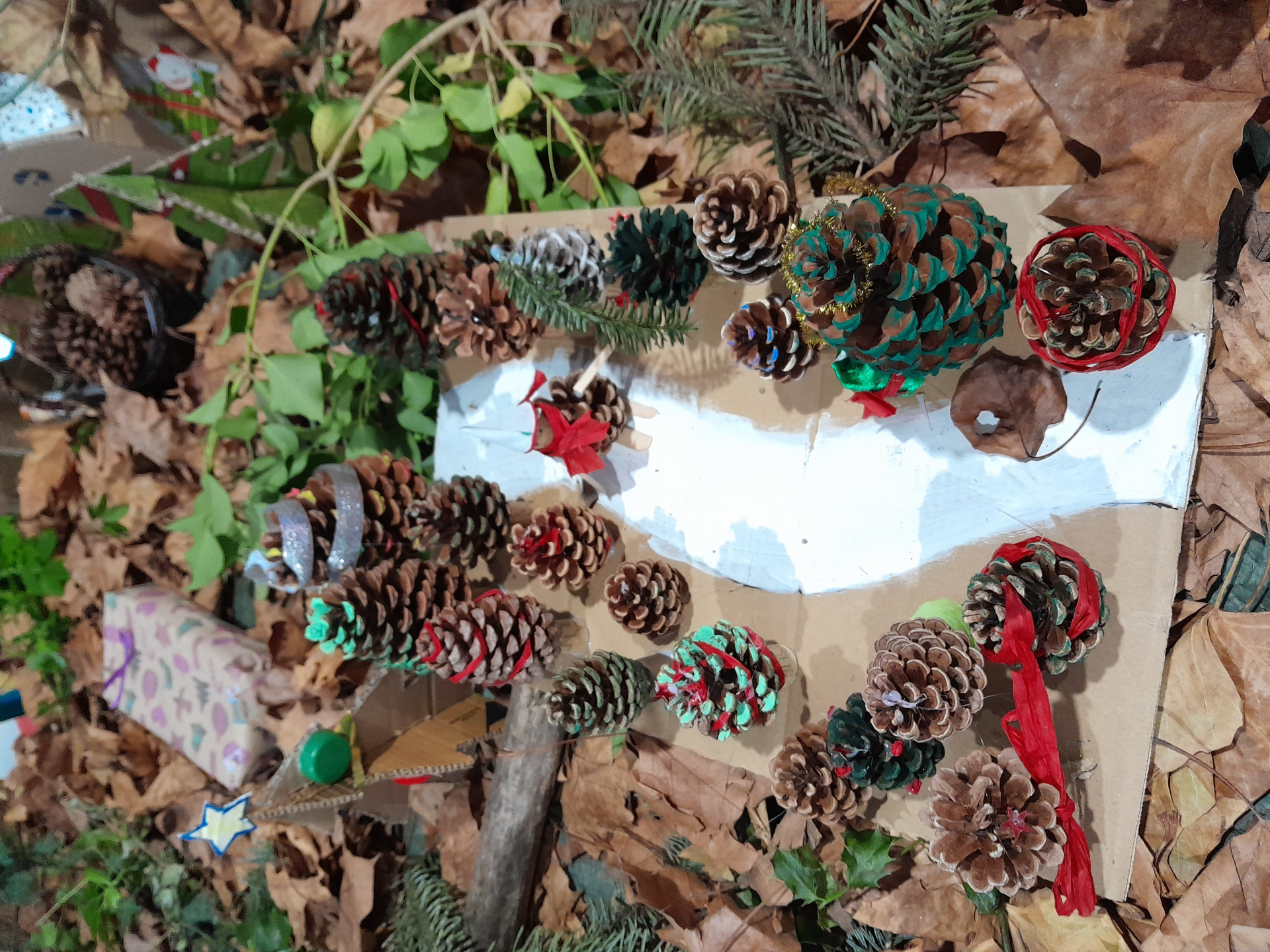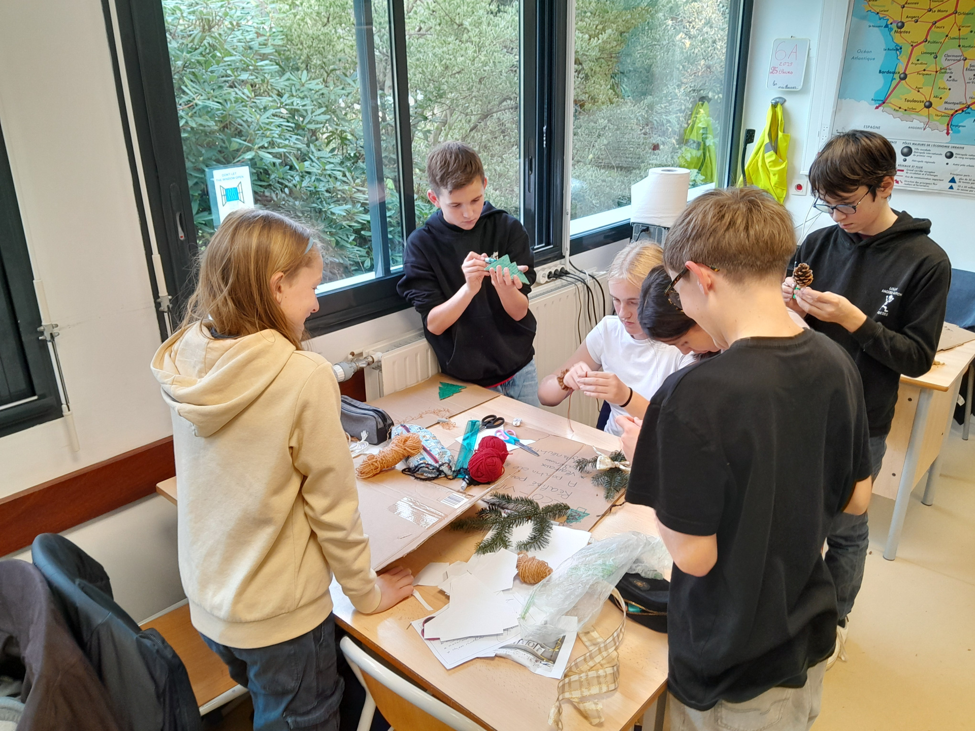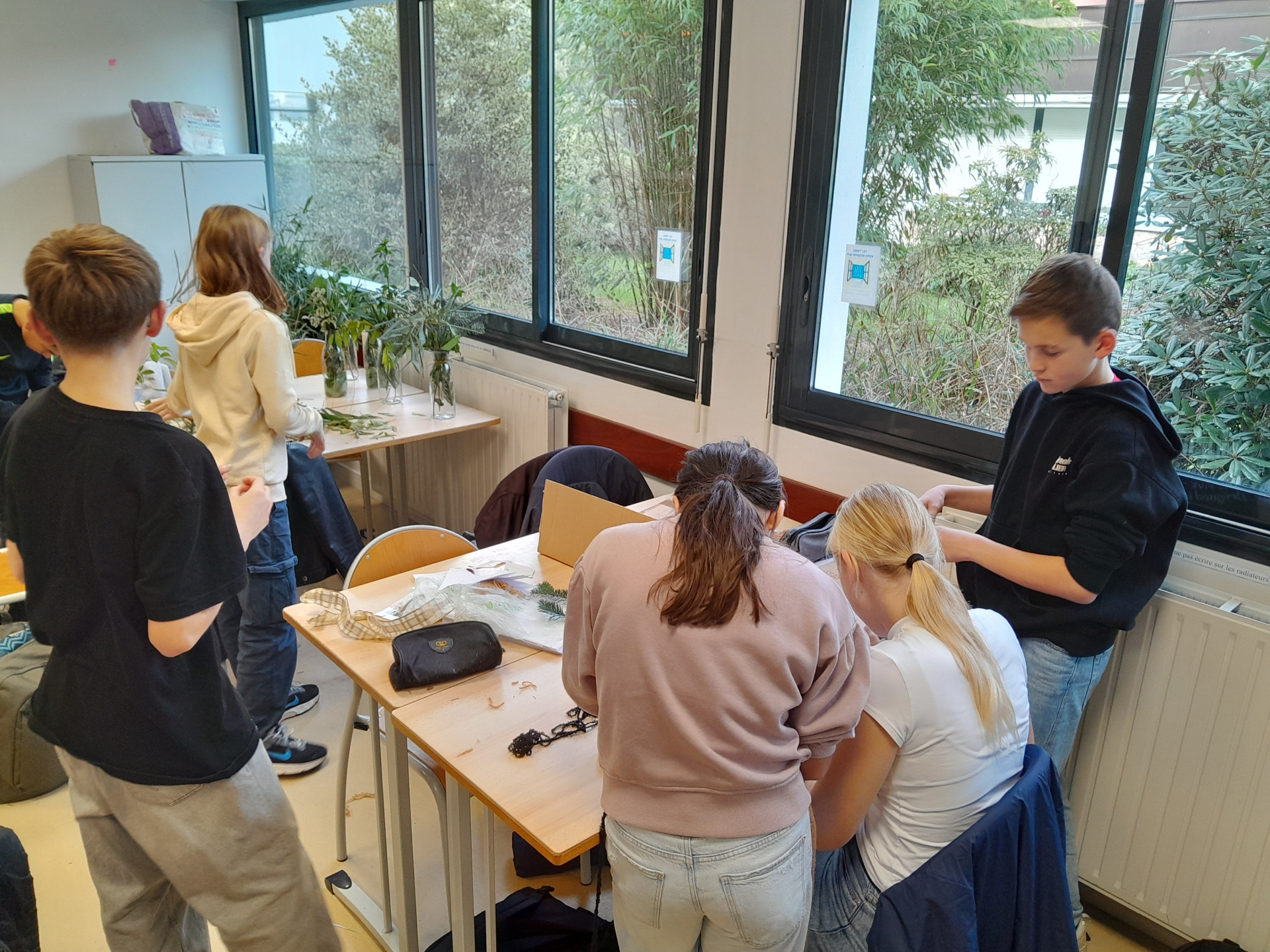 Le concept est très simple : décorer et animer le hall du collège sans dépenser, ni argent ni électricité, uniquement à partir d’objets réutilisés, de matériaux recyclés ou encore de ressources offertes par la nature :-)