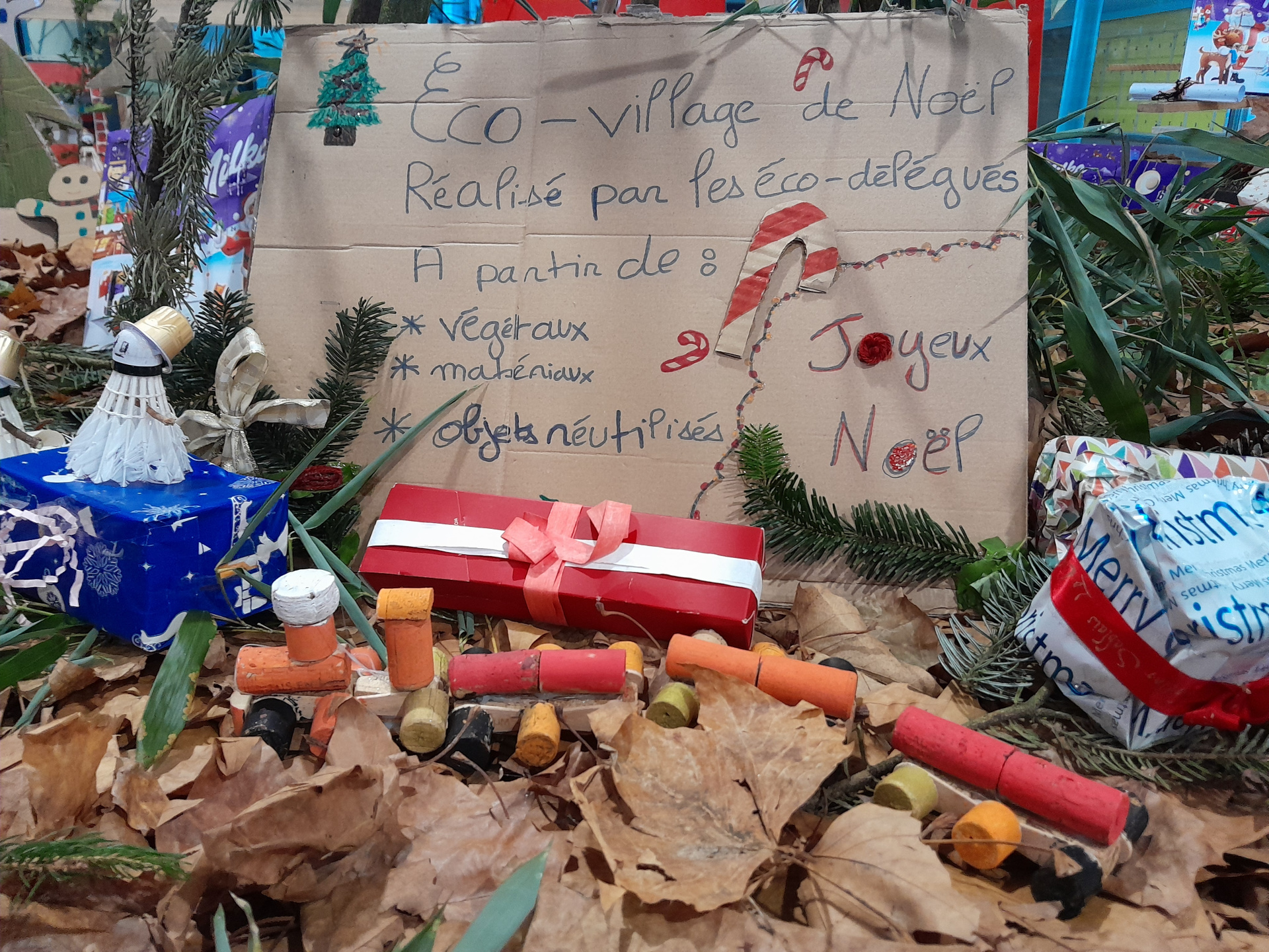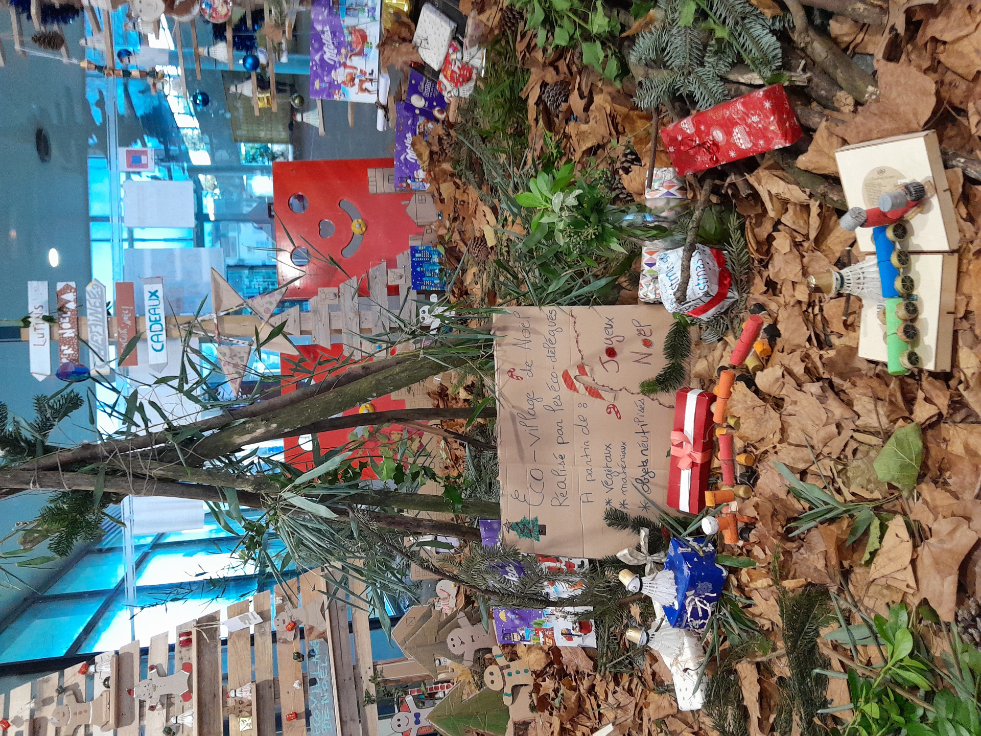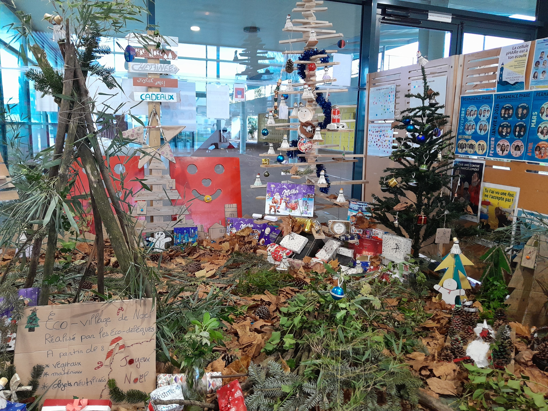 Les 40 éco-délégués 2025/2026 du collège Andrée Récipon ont retroussé leurs manches fin novembre pour créer et installer l’habituel éco-village de NOEL dans le hall de l’établissement.