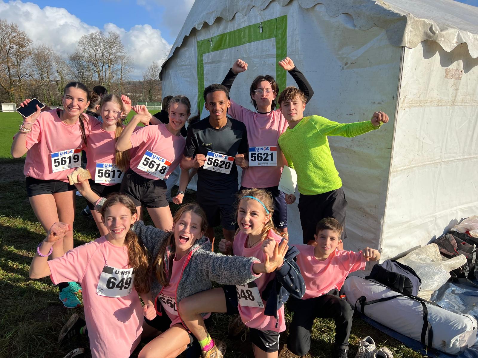 3 équipes mixtes ont représenté avec panache le collège Andrée Récipon à l’occasion du cross académique UNSS 2025 qui avait lieu à QUIMPER sur le site de Corniguel !